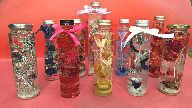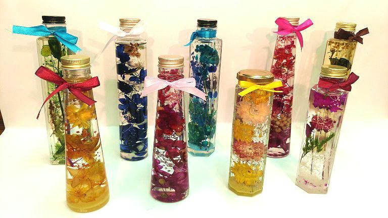 ハーバリウム2本160㏄と60㏄位他。2本制作。15種類程のボトルから選べます。お花は入れ放題。リボン付き。ラッピングもします。当日お持ち帰り出来ます。 キャップの色が2021年6月からかなり増えました!