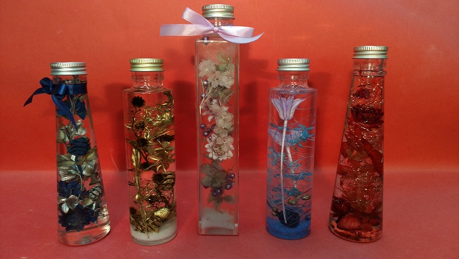 ★【制作するもの】 ハーバリウム1本制作。大小10種類程のボトルから好きな大きさ形が選べます。220cc迄。お花は入れ放題。リボン付き。当日お持ち帰り出来ます。追加は1本100㏄に付き+1000円です。