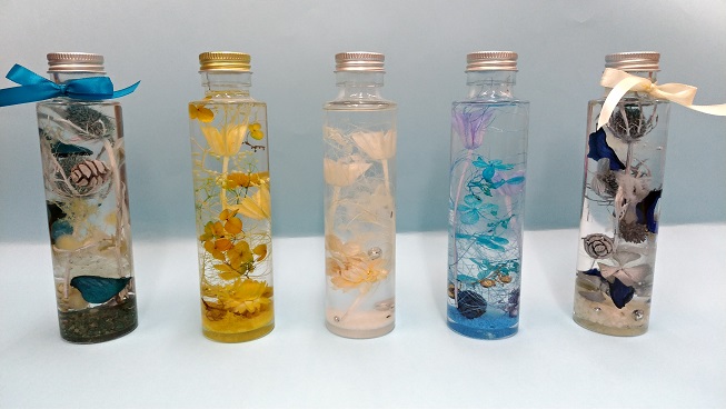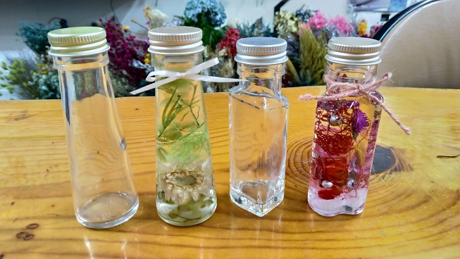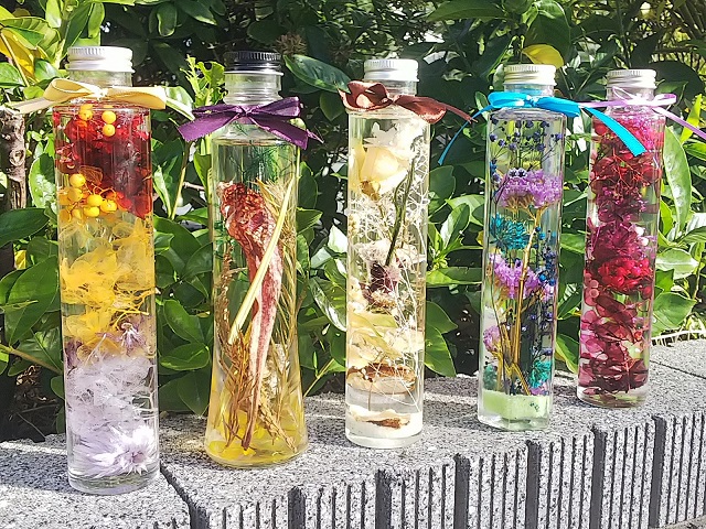 ★ 【制作するもの】 ハーバリウム1本制作。120㏄ボトル迄1本プラン.ボトルサイズ横48mm×縦165mm他。当日5種類位から選べます。