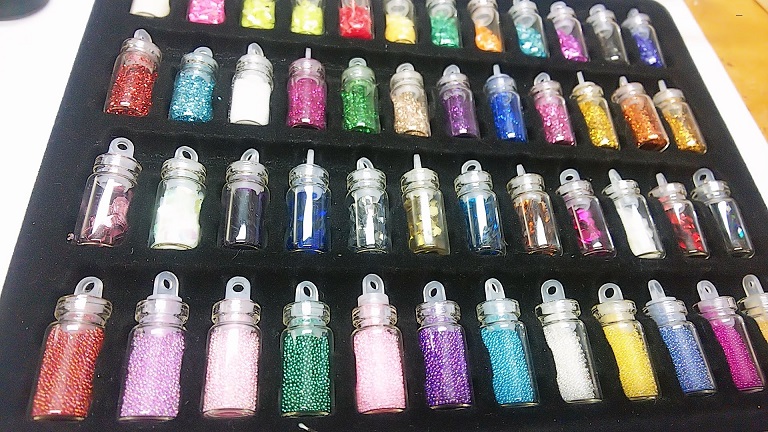 下からブリオン、ホログラム、ラメ、シェル等。すべてのコースに種類は違いますがついてます。
