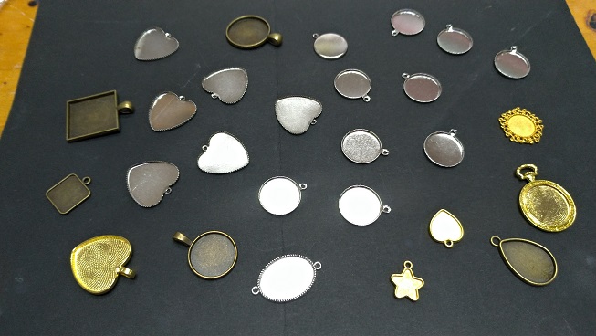 ★フレーム・・写真真ん中の底がない物。裏まで透明で透き通った作品ができます。安価。底面にテープを貼って作ります。ひもを通す穴が無い物は後で開けます。★ミール皿・・写真右下の型です。底があるのでこのままシールを貼ったり、パーツが置けます。簡単にできます。★注型・・写真上の白い型です。レジンを底に引いてそのままお花やパーツが載せれます。手数が少なく透明感が得られるので今一番人気です。ヒモ穴が無いので開けて通します。 ★ペンダント、ストラップはどの型でもできますが、ピアスや髪留め等は型が限定されます。